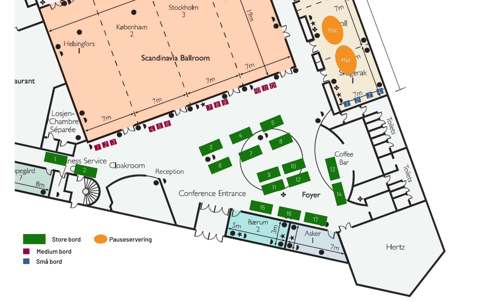 Til forandring fra i fjor, så har vi flyttet matserveringen til rommene Skagerak og Eidsvoll, hvor et fåtall av små utsillere også vil befinne seg.